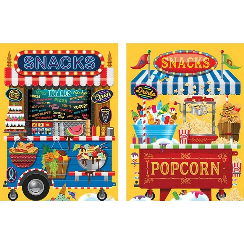 This reusable fabric scene setters provides a lively backdrop for your snack area. Easy to store and use again next year! Two panels, each panel is 8 ft. by 6 ft. Total scene is 8 ft. by 12 ft. Small, reinforced holes in the top provide an easy way to hang the panels.