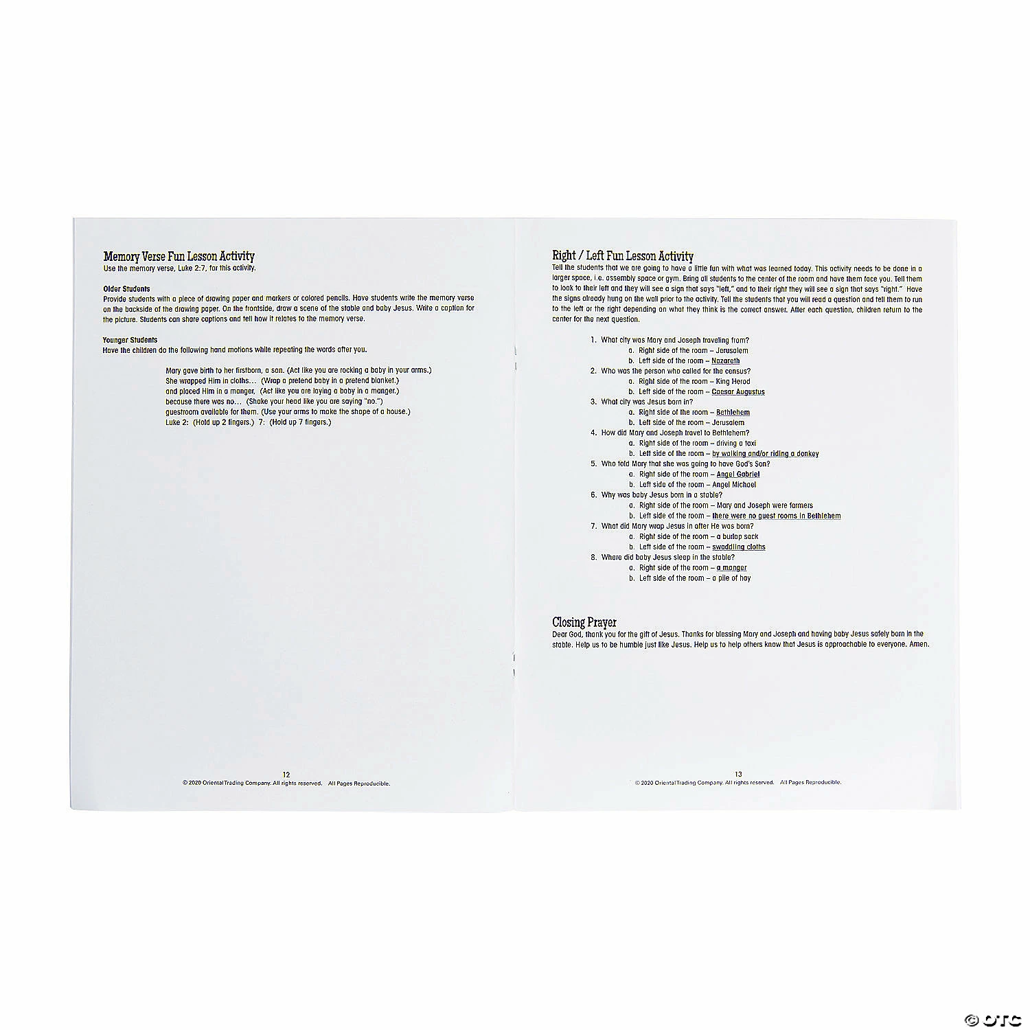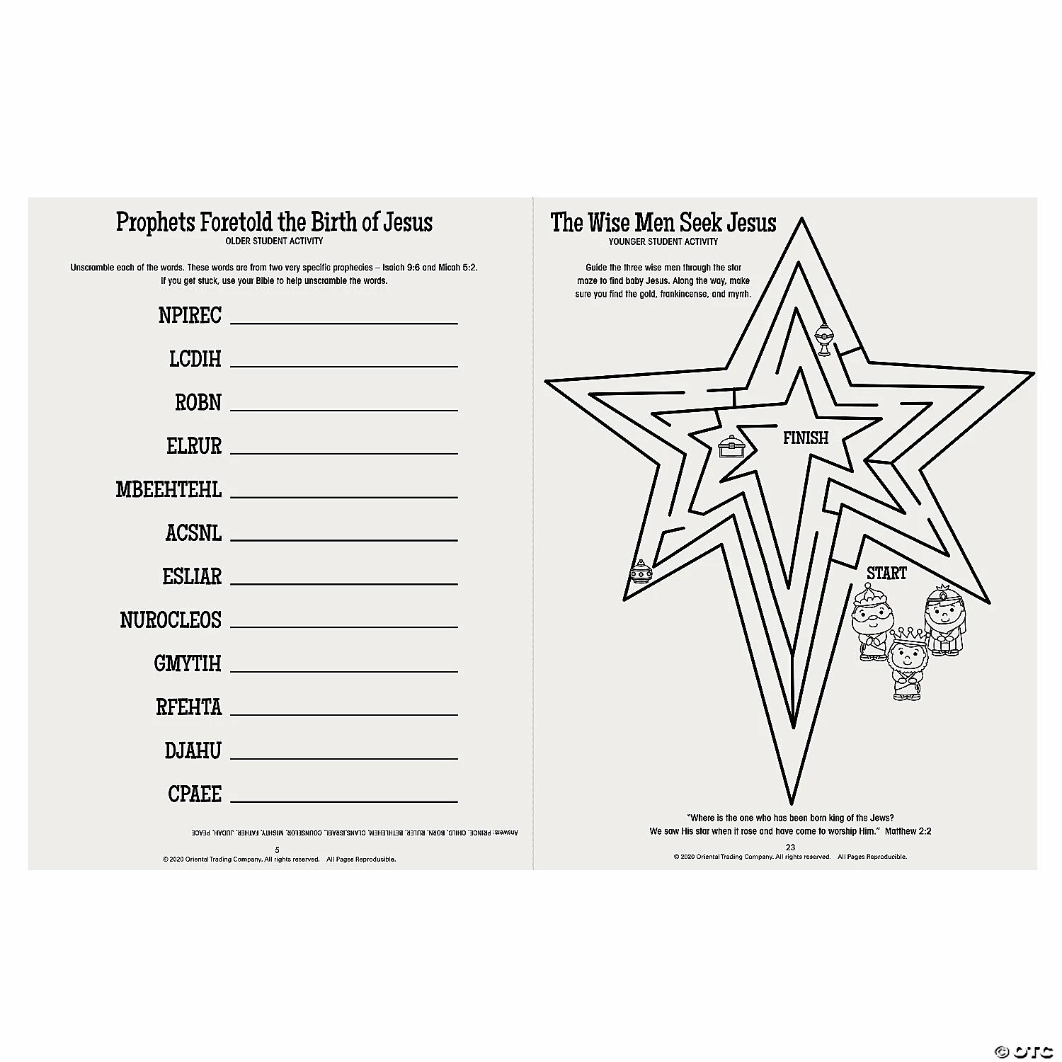 With five lessons on the nativity story included, this lesson book guides you along as a teacher or parent in helping kids learn about the miracle of Christ’s birth. This lesson book makes learning the nativity story fun for kids (and fun to teach for grown-ups!). Great for Sunday School, faith-based classrooms or learning at home, this lesson book includes activity worksheets, interactive games, discussion prompts and more. Paper. 9″ x 12″ 24 pgs. © OTC