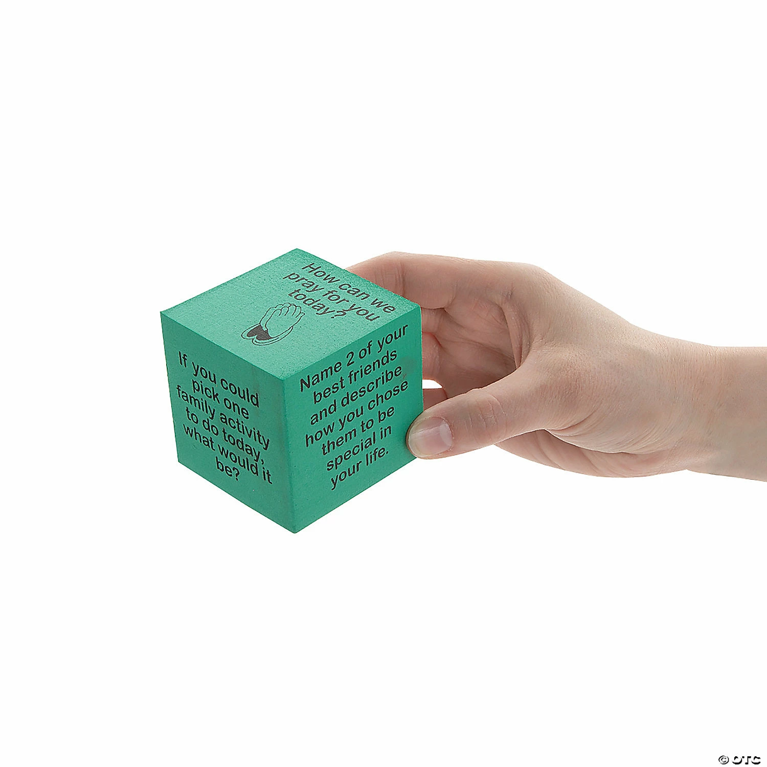 Start up some important and meaningful conversations with the help of these dice. Ask faith-based questions that will get kids thinking about their faith in action. These dice feature questions that prompt deep conversations such as βWhat do you think makes a happy and blessed family?β and more, making these a fun activity for Sunday School or youth groups. Foam. (6 pcs. per set) 2 1/2″ x 2 1/2″ x 2 1/2″ Β© OTC