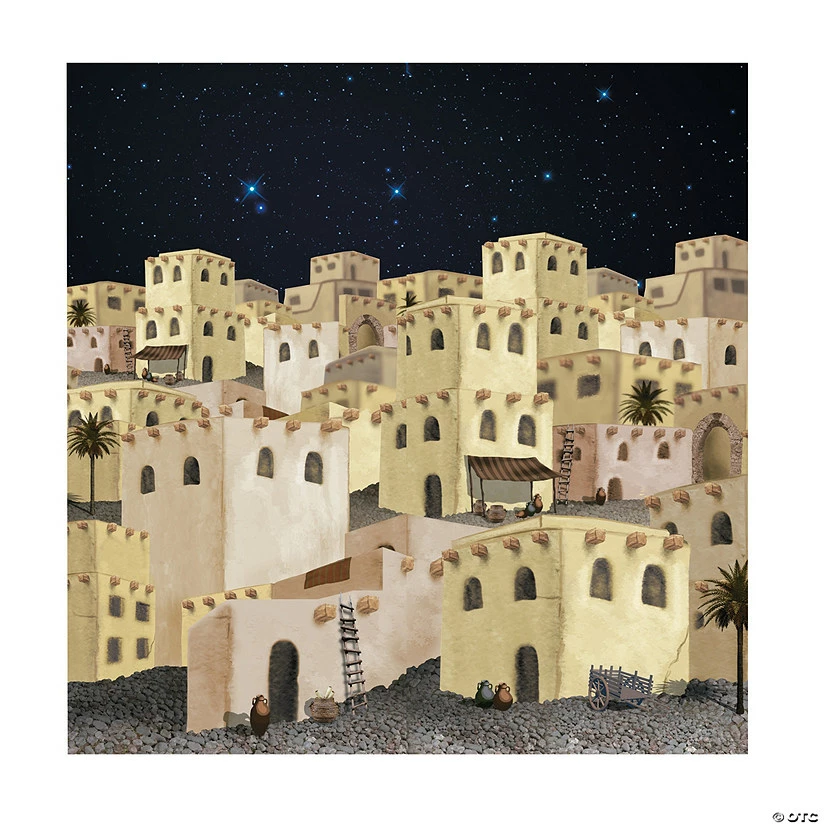The simplest way to create a nativity scene for your church Christmas pageant! This Nativity Pageant Backdrop Banner is easy to set up year after year and adds a great touch to your Christmas decorations. Find more nativity supplies to match on our site. Plastic. 6 ft. x 6 ft. ยฉ OTC