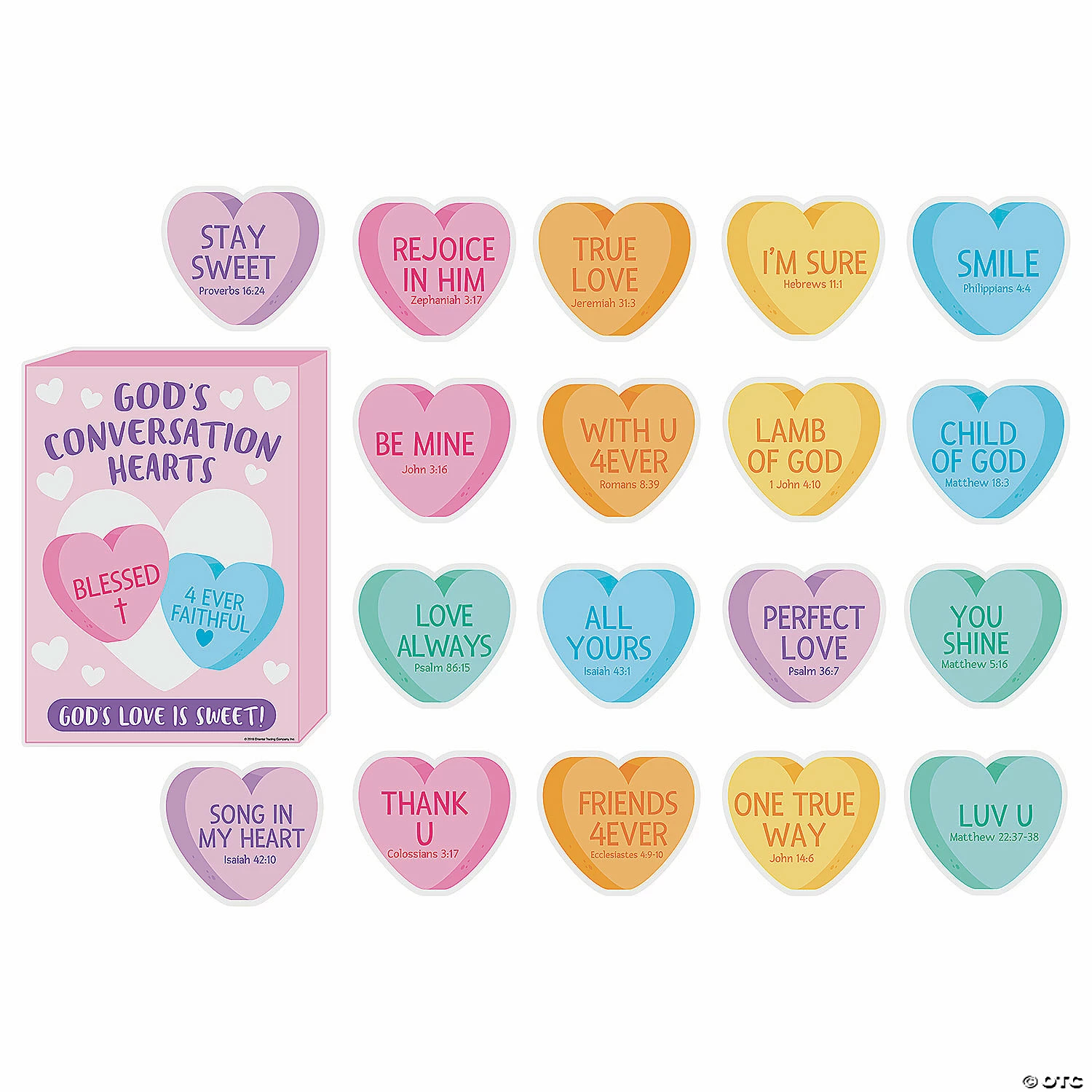 Change up your bulletin board decorations for the season with the help of this religious Valentine’s Day Bulletin Board Set. Each heart features assorted inspirational phrases from Bible verses. Great for Sunday School classrooms or church hallways. Cardstock. (19 pcs. per unit) 9″ – 17″ x 8″ – 21″ ยฉ OTC
