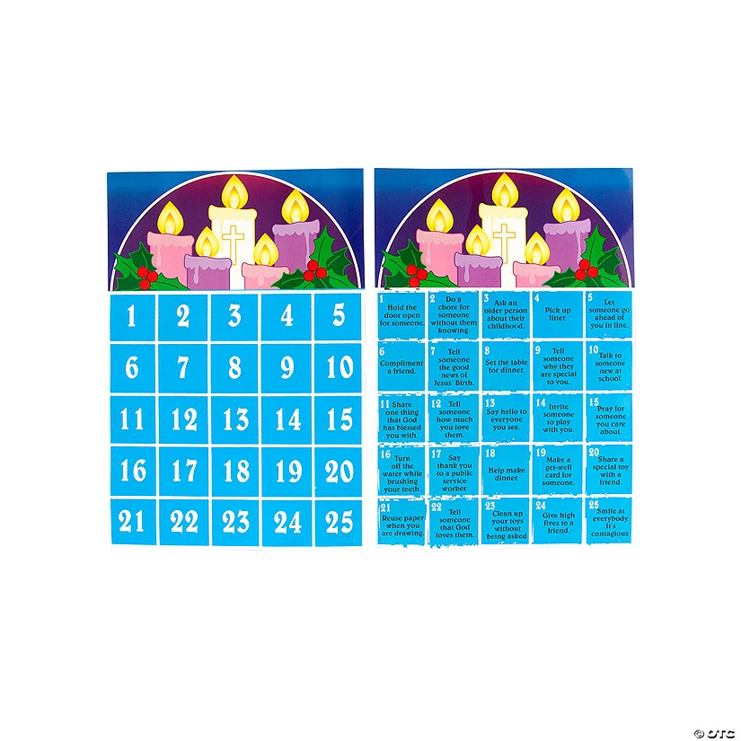 These scratch calendars are a great activity for kids in Sunday School or at home to celebrate the season of Advent as they countdown to Christmas. Each day in December, little ones can scratch off the corresponding day to reveal a thoughtful act of kindness for them to complete. Find more great Advent supplies and prizes on our website. Includes scratching tools. Cardstock. (1 dozen per unit) 8 1/2″ x 12 1/2″ ยฉ OTC