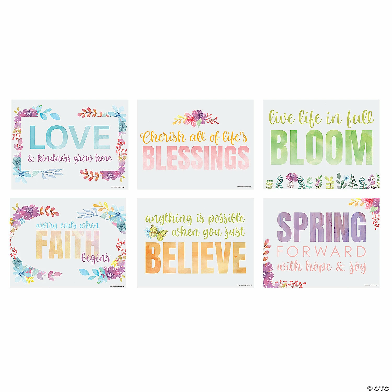 Celebrate spring with these lovely posters featuring a watercolor look and positive faith messaging. A good choice for a ladies’ Bible study space or for a youth group meeting room, these faith-filled wall decorations will help bring the colors of spring indoors. Display all the posters together or scatter them throughout the room’s walls. Cardstock. (6 pcs. per unit) 22″ x 17″ © OTC