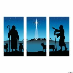 Easily set the scene for your church’s next nativity play! This beautiful banner shows two shepherds overlooking a starry Bethlehem as Jesus is born. Young actors will easily slip into character when your stage is transformed into the birthplace of Jesus. Hang in Sunday School rooms for decoration as Christmas nears while teaching students the reason for the season. Plastic. (3 pcs. per set) Assembled, 9 ft. x 6 ft. Simple assembly required. ยฉ OTC