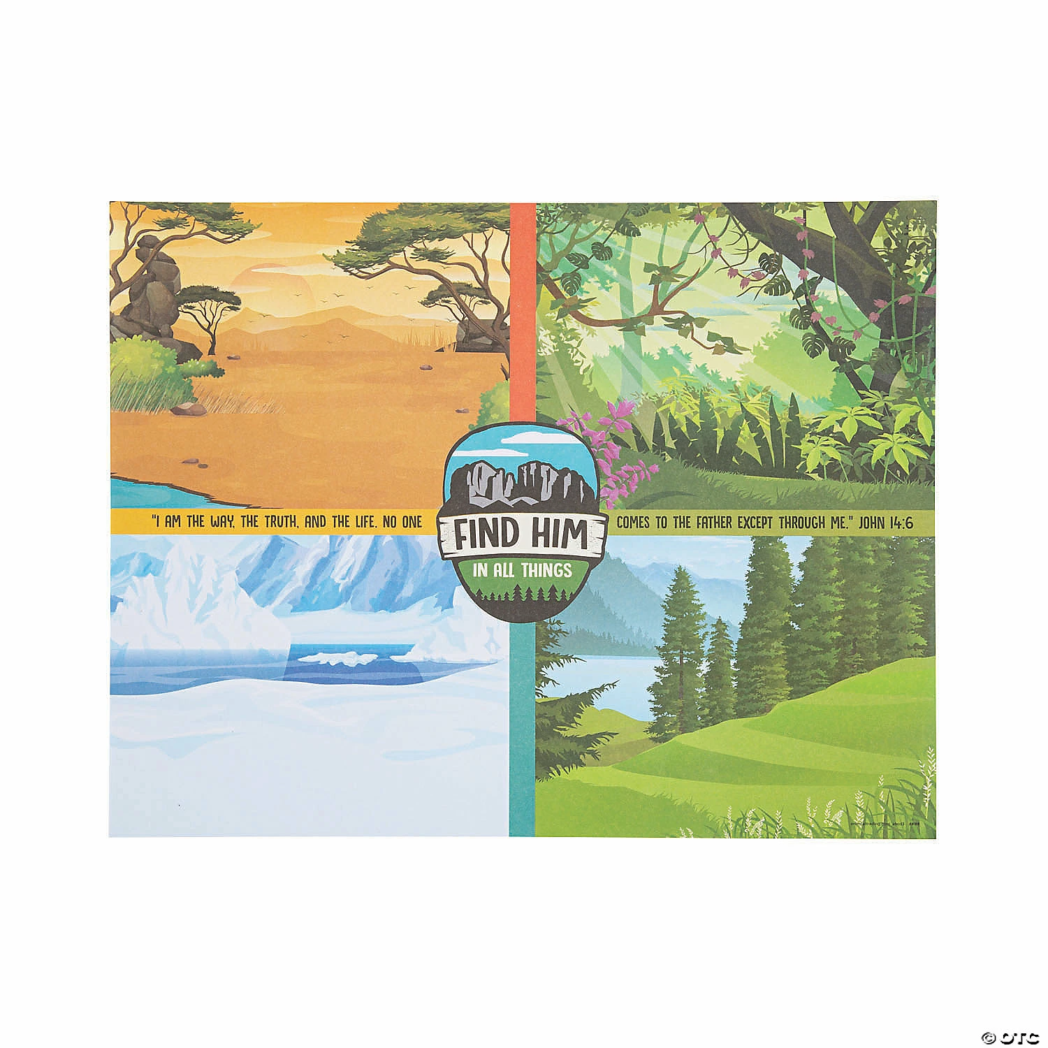 Celebrate the many different animals and environments that God created with these Wild Encounters VBS Sticker Scenes! This fun Sunday School activity reminds young believers to find God in all things, including a safari scene, a jungle, a forest and an arctic scene. Kids will have to decide which animal belongs in which background. Includes 12 backgrounds and 12 sticker sheets. Paper. 11″ x 8 1/2″ © OTC